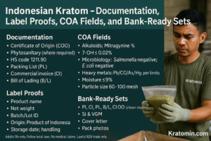 Indonesian kratom — Documentation, Label Proofs, COA Fields, and Bank-Ready Sets | Kratomin.com
